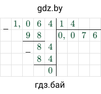 $0,01064 : (-0,14) = - (0,01064 : 0,14) = - (1,064 : 14) = -0,076$.